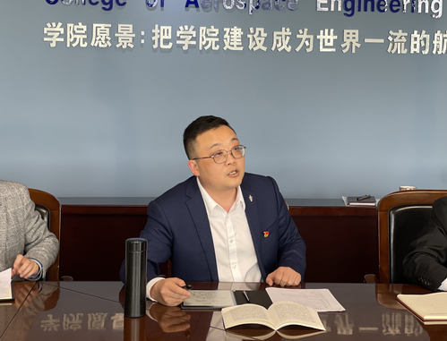 在重点发言环节,航空学院副经理陆洋围绕党的二十大报告中关于教育、科技、人才的重要论述分享了自己的学习体会,并结合学院学科教材建设、新工科发展、产教融合、劳动教育等工作进行了具体介绍。