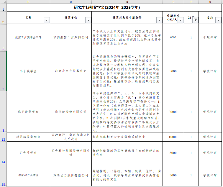 2024-2025学年学校分配给公司特别奖学金名额如下。