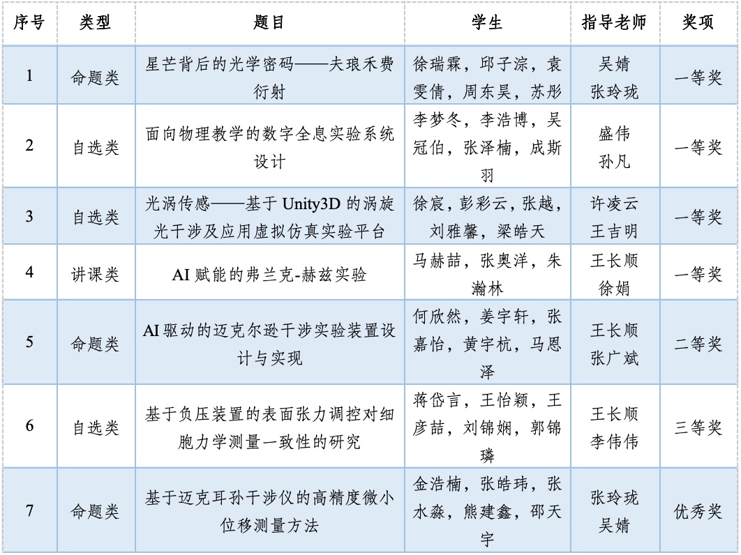 南航代表队在学校教务部的大力支持和bv1946伟德官网的精心组织下,共派出7支队伍参赛,其中有5支队伍成功晋级全国总决赛,共获一等奖4项、二等奖1项、三等奖1项,优秀奖1项,创参赛以来最好成绩!公司一等奖获奖数量与获奖比例均位居全国参赛高校前列,是一等奖覆盖所有赛道(讲课类、自选类和命题类)的高校,同时公司连续第六年成功摘得优秀组织奖,充分彰显了公司在物理实验教学与创新人才培养方面的深厚积淀。