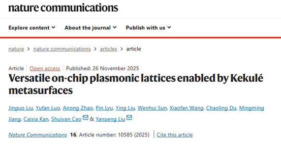 bv1946伟德官网光电功能材料器件与物理研究团队曹水艳副研究员与国际前沿科学研究院刘衍朋教授合作,研究了一种多功能Kekulé超表面平台与基于此系列超表面结构的多自由度可控SPP晶格,实现了表面等离子体激元在二维极限下的晶格类型、空间分布及位点相对强度的可控参数调控;构建了片上可重构的面内/面外光源阵列,并进一步证明了的SPP晶格作为图像加密/解密的技术应用。相关成果以“基于Kekulé超表面的多功能片上等离激元晶格(Versatile on-chip plasmonic lattices enabled by Kekulé metasurfaces)”为题在线发表于《Nature Communications》。bv1946伟德官网22级电子信息专业硕士生刘金果、罗宇凡及聊城大学赵爱荣博士为论文共同第一作者,曹水艳副研究员和国际前沿科学研究院刘衍朋教授为共同通讯作者。光电功能材料器件与物理研究团队阚彩侠教授、姜明明教授、杜朝玲副教授也参与了该工作的研究。
